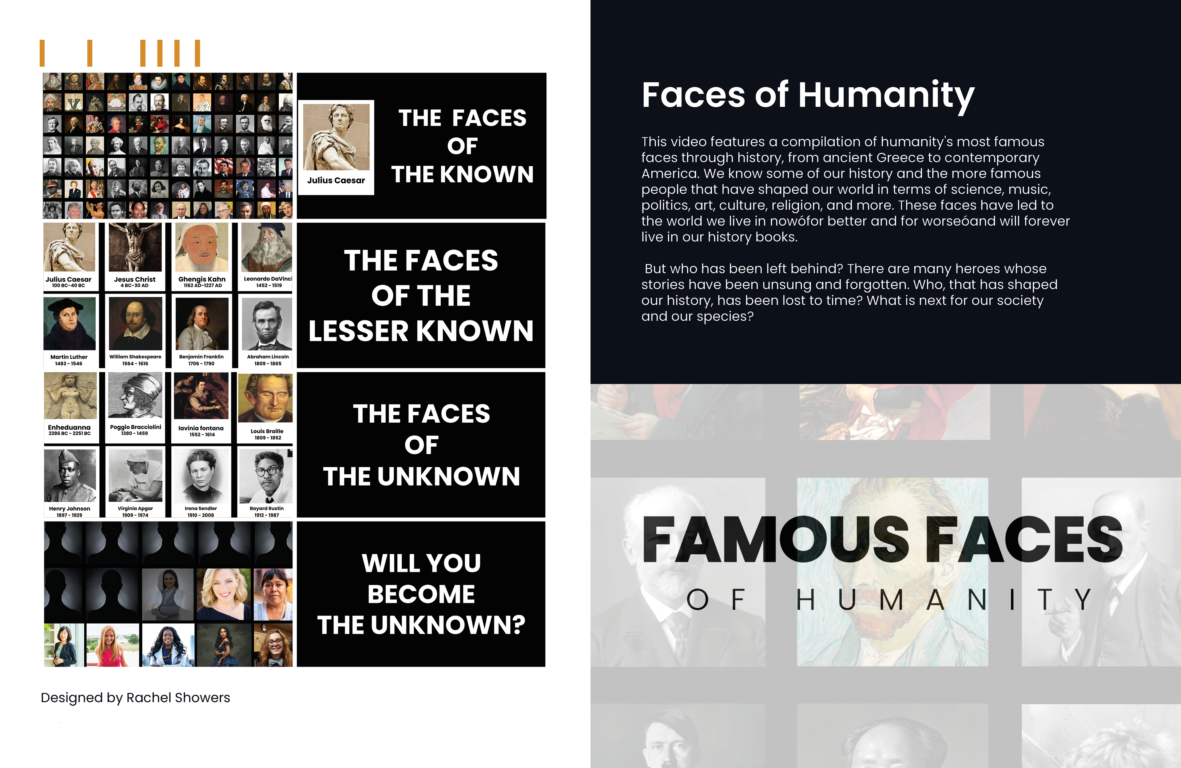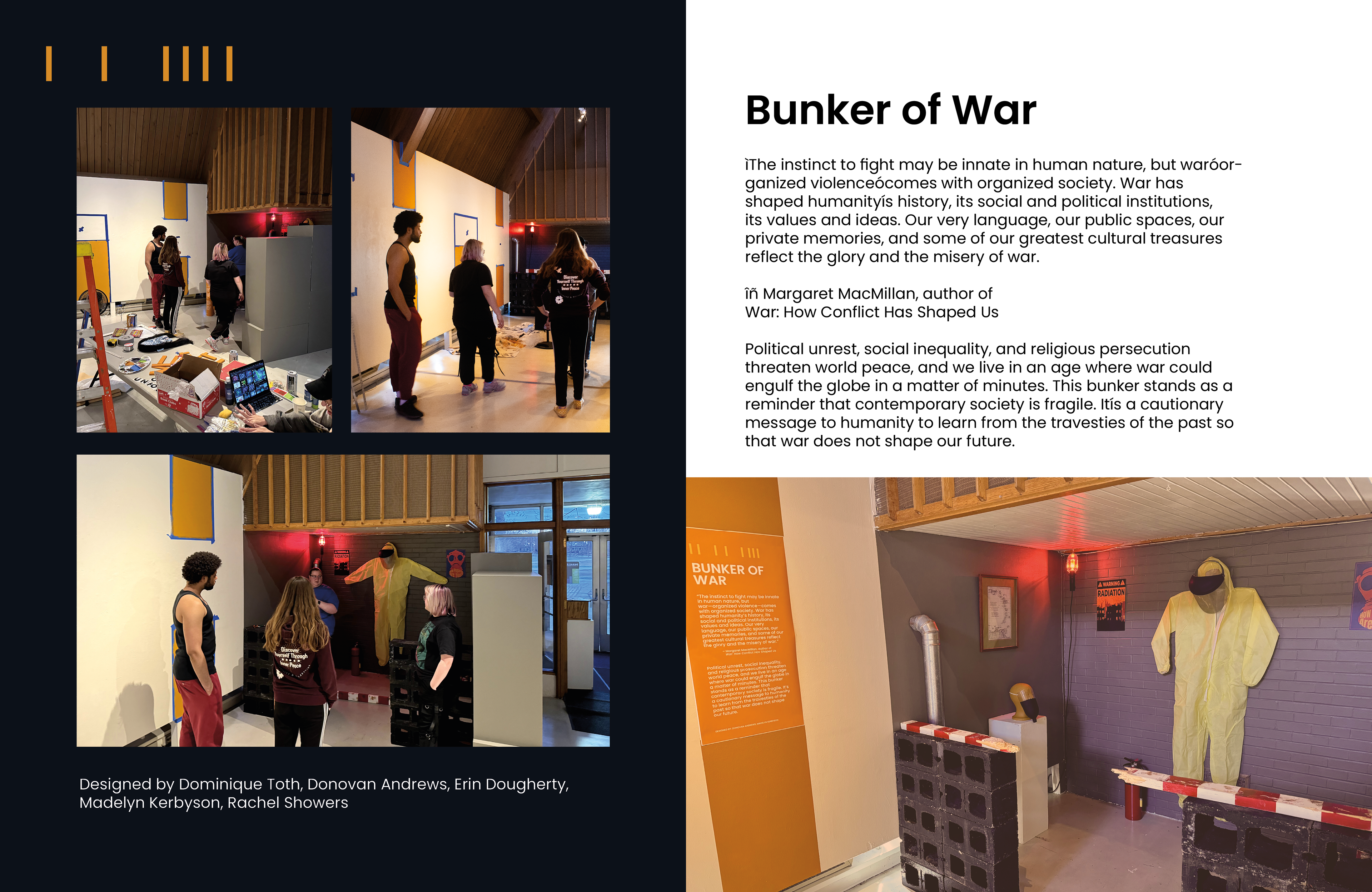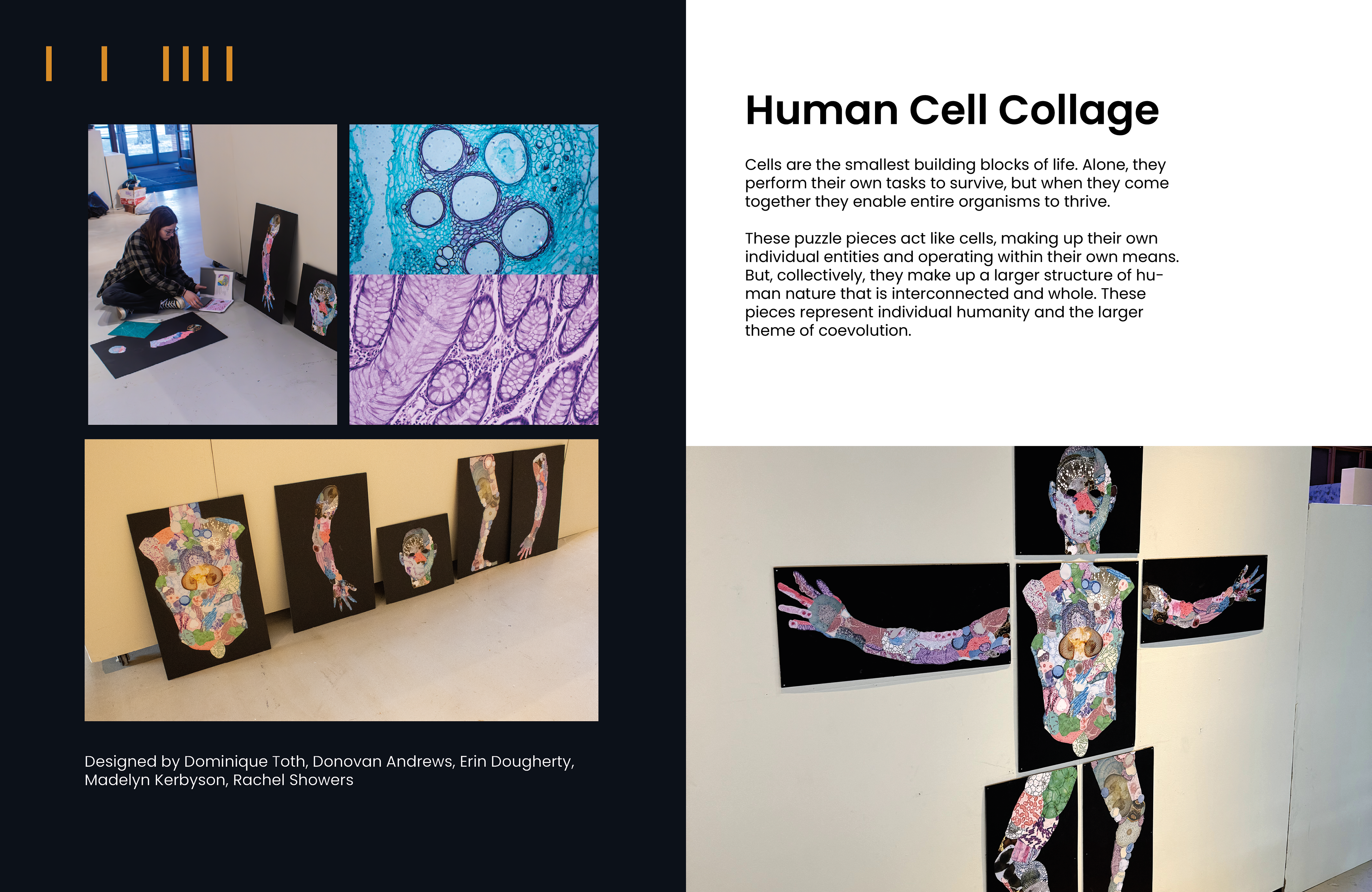 My group and I were tasked with documenting the process of our senior capstone exhibition. My group decided to use my interior page design as a template for the entire book. Below are the pages that documented my group's exhibits from our capstone.